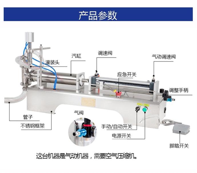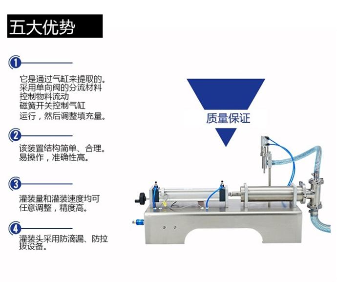 DY系列灌裝機為半自動活塞式灌裝機,通過氣缸帶動一個活塞來抽取和打出物料,用單項閥控制物料流向,用磁簧開關控制氣缸的行程,即可調節(jié)灌裝量。